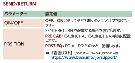 センド・リターンはパッチごとにON/OFFする仕様です。